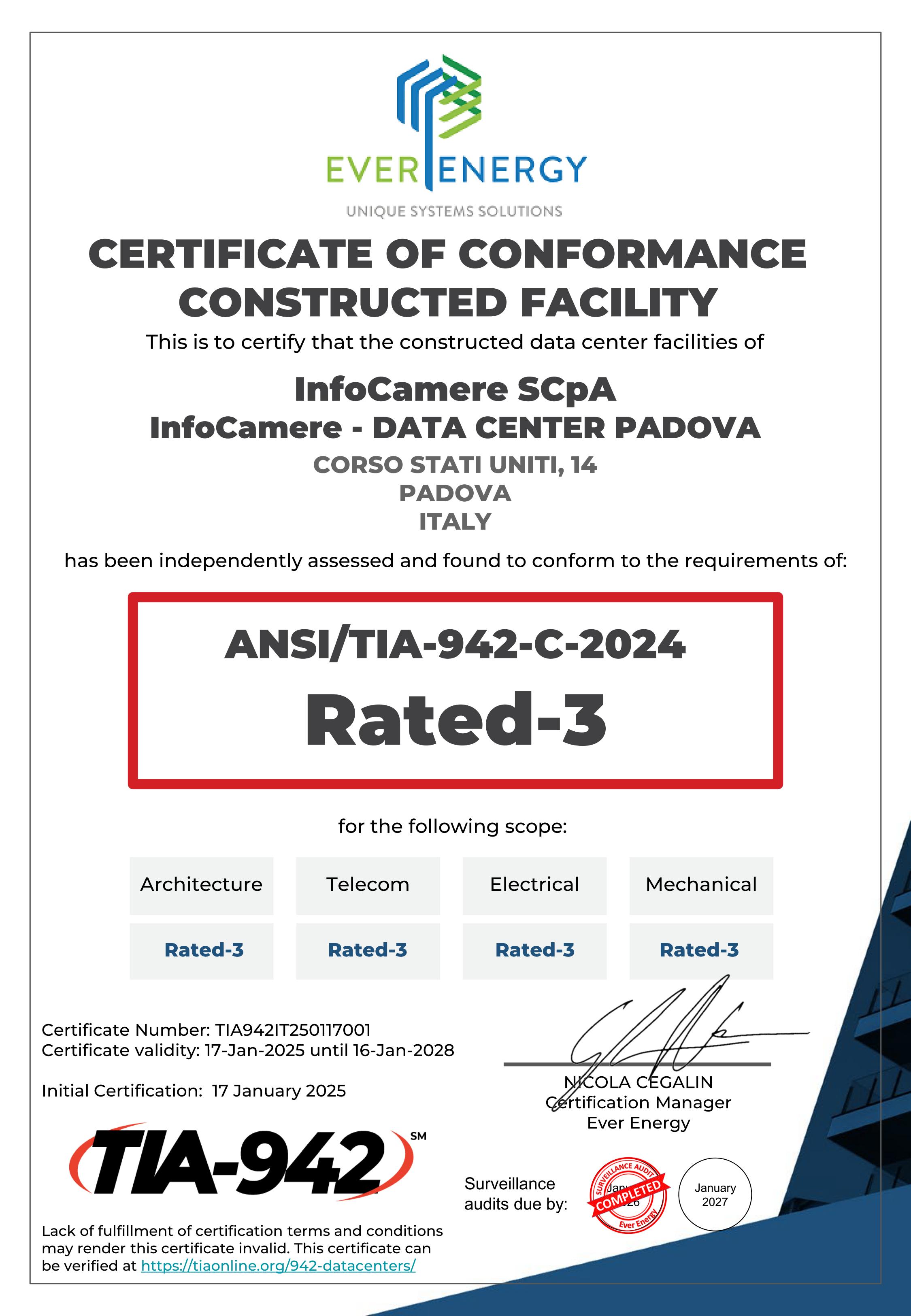 InfoCamere designs, creates, distributes and provides assistance on IT services for secure data processing and storage, computerized documents and digital identity for Chambers of Commerce, Public Administration offices and other enterprises by means of a Business Management System certified to ISO standards.